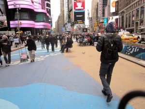 Anyone who hasn’t been to New York City in the last few years will immediately notice a few changes to the urban landscape. Most obviously, Broadway Avenue, New York’s “main street,” has a whole new look and feel around Midtown Manhattan. The Bloomberg Administration, let by his transportation Commissioner, has transformed Broadway into a decent pedestrian landscape. They accomplished the feat by removing a lanes of auto traffic and replacing them with sidewalk café accoutrements. That alone should seem astounding to anyone who remembers what the street what it was like before. There is also a whole new network of bicycle lanes, and a new bicycle sharing system is set to launch this summer.