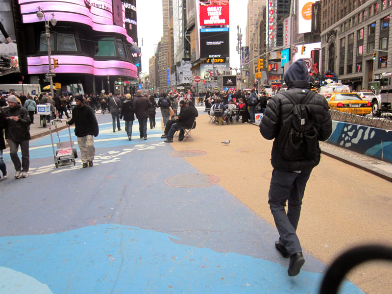 - Pedestrians in the new Times Square.