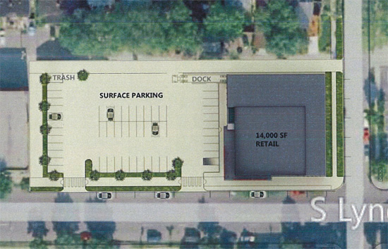No, the real problem with the Trader Joe’s Lyndale store is that the proposed storeplan doesn’t fit the future of Lyndale Avenue, and you’d think that the Planning Commission would have pressed harder to get a better site plan out of the developer. The proposed building would be a one-story box on a site dominated by a large surface parking lot along Lyndale. (There are also some underground spaces.) It’s basically the same building style as the store on Lexington in St Paul, only with the storefront pushed up along the sidewalk (and without the second retail building).
