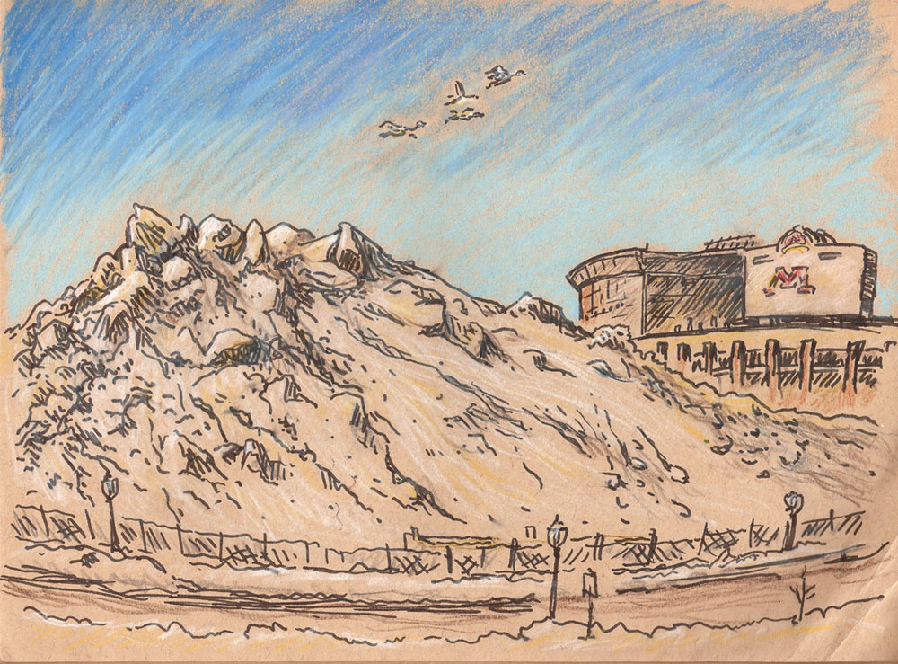 Roz also gave me permission to share some of her great sketches of snow piles – this is a nice sketch of Mount Sears in Saint Paul: