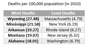 This chart comes from a great post about the folly of insurance rankings for US states over at Strong Towns. (See for example, City Pages recently using these kinds of stats on their blog. They write: “Out of the 200 cities included in the study, which is based on crash data, Minneapolis ranks 90th. St. Paul, meanwhile, ranks 103rd.”)