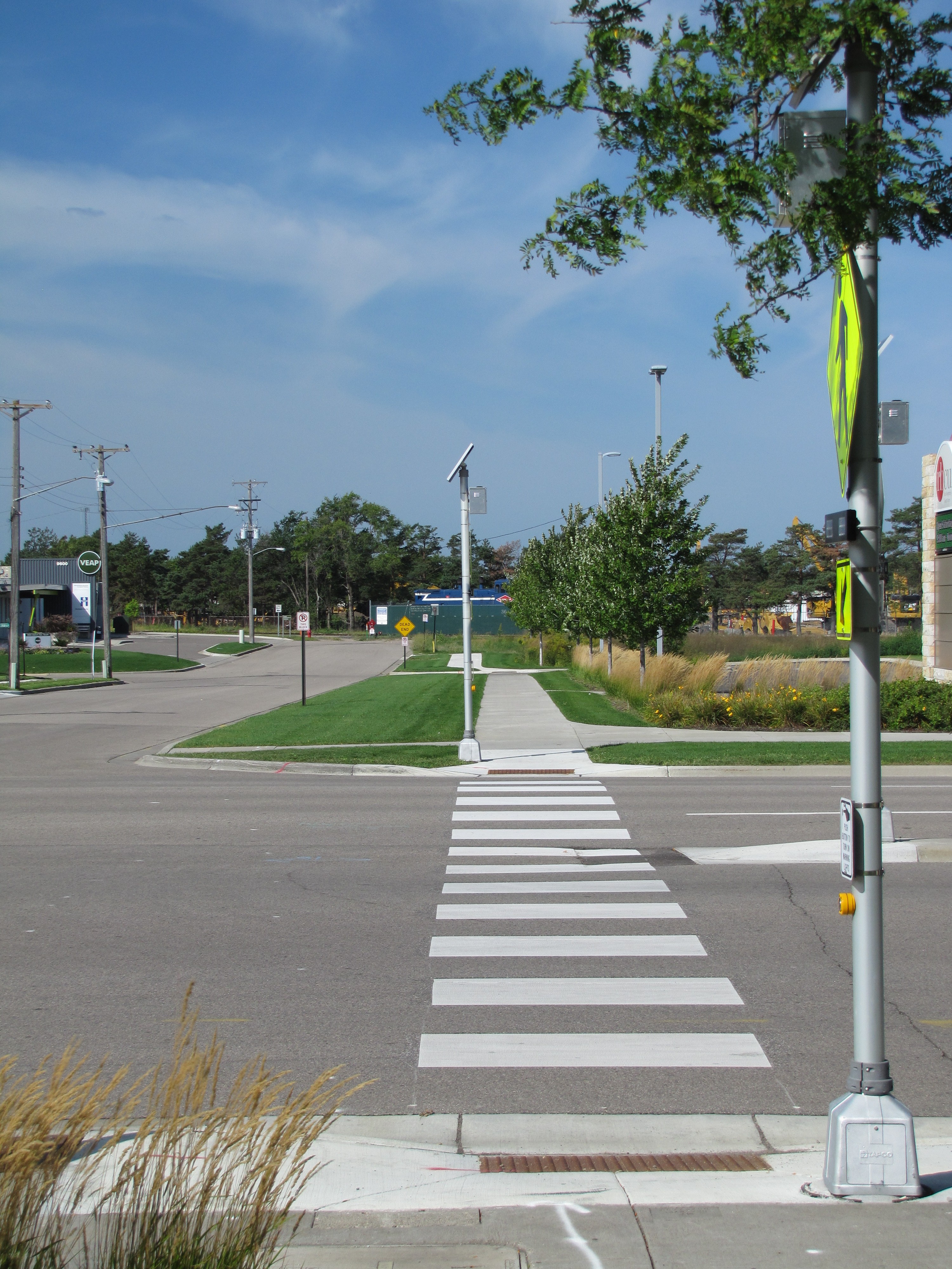 Previously I wrote about the past and present of my neighborhood, the Oxboro neighborhood of Bloomington. There’s been a few modest improvements for bicycles and pedestrians, including the addition of countdown pedestrian signals and this new sidewalk to the VEAP social services building with a rectangular rapid flashing beacon, and new marked crosswalk to cross Lyndale Avenue.