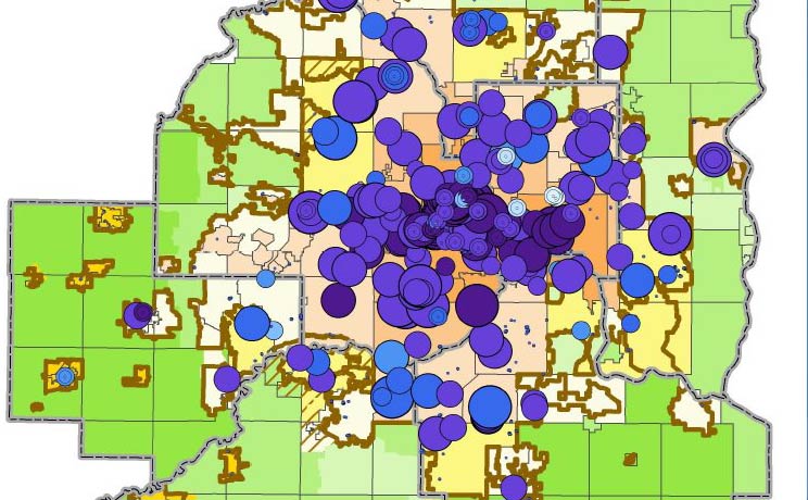 One of streets.mn’s loyal readers pointed me toward this great map from a recent report at last week’s Met Council meeting. Here’s the map: