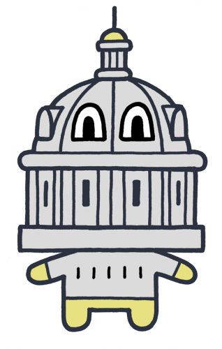 A drawing of a potential Japanese Anime style mascot for the city of Saint Paul that is a cute capitol building, by Andy Singer