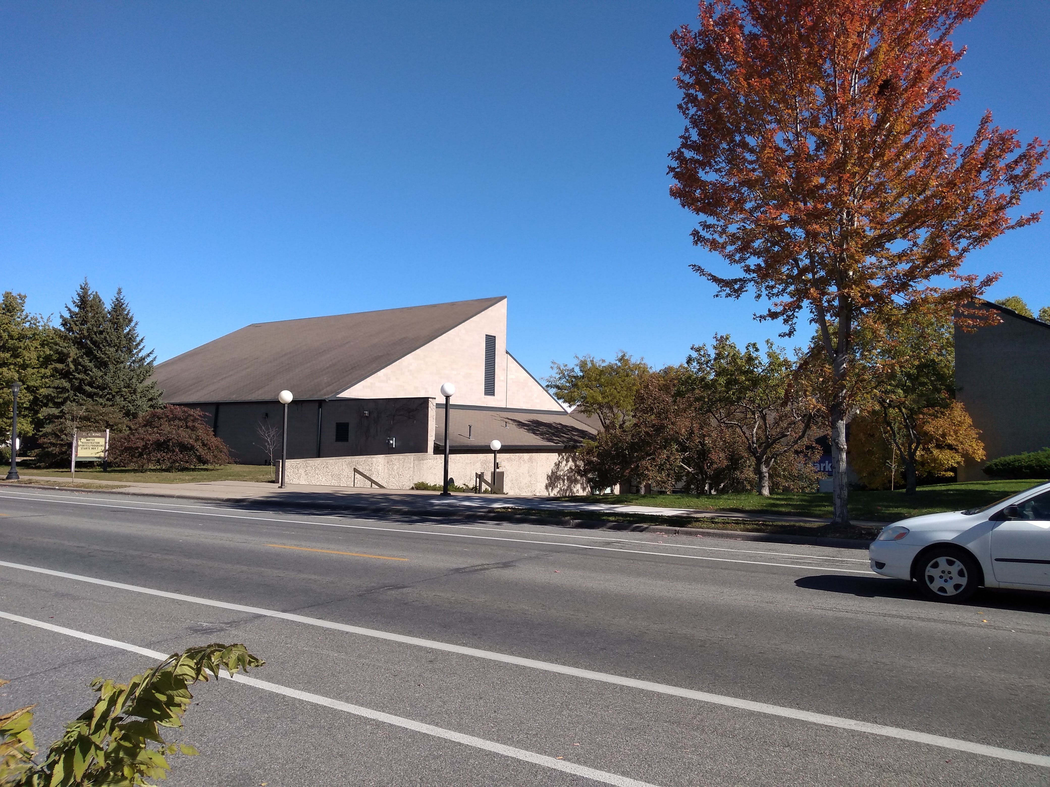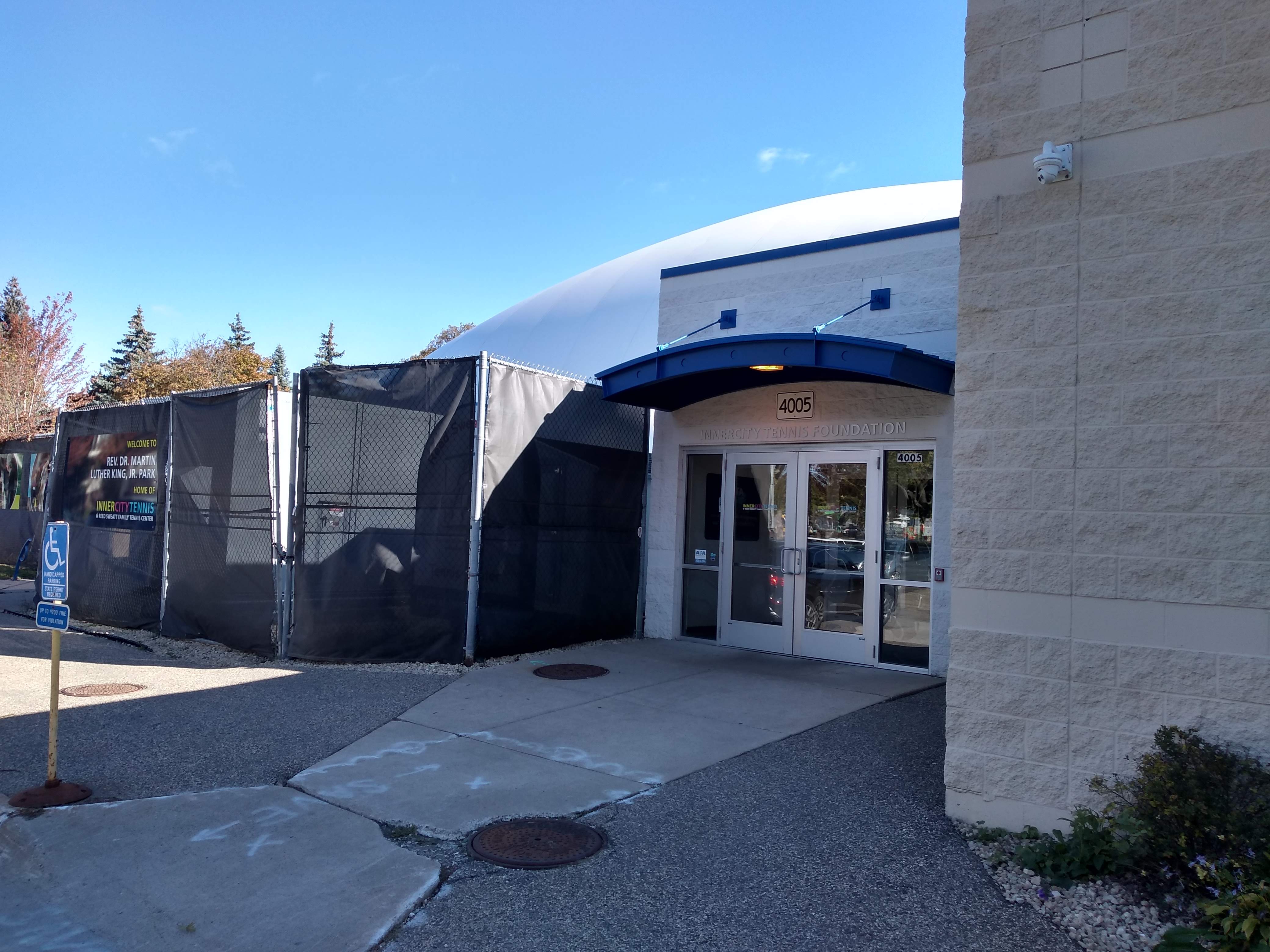 Between 40th and 42nd Streets, 1st Avenue South is interrupted by the Rev. Dr. Martin Luther King, Jr. Park. However, I was able to continue by using a path through the park that runs essentially straight along the 1st Avenue alignment. The northern end of this path is at the entry to the Reed Sweatt Family Tennis Center, a facility associated with InnerCity Tennis.