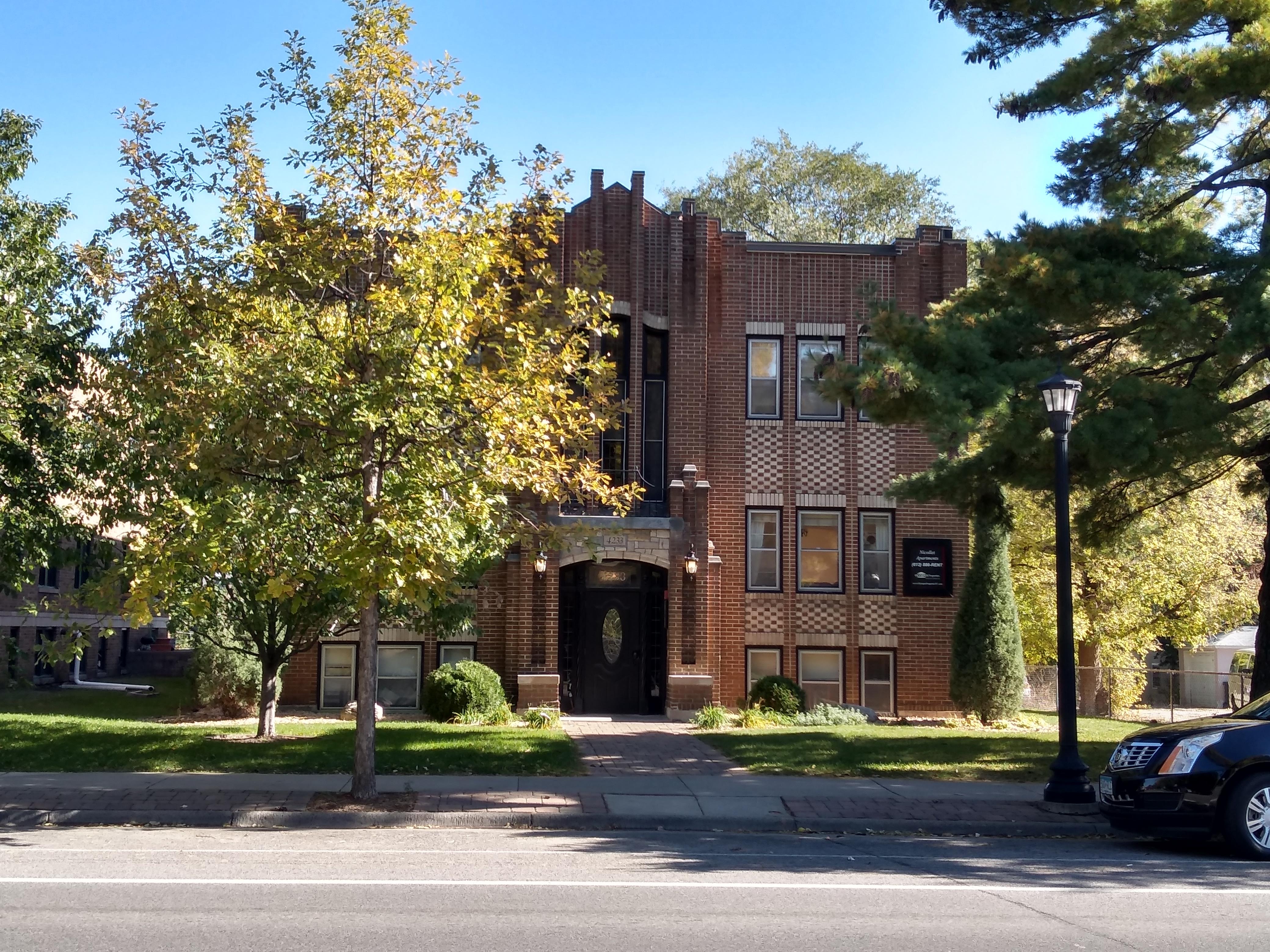After lunch, I got to see more of Nicollet Avenue. Although it is a major commercial street, that doesn’t mean it is devoid of residences. Indeed, just a few doors north of Revival I photographed an apartment building only to then notice that it is just the southernmost of a group of four. They differ only in their styling details, having all been built in 1928 by Peter Sundquist.