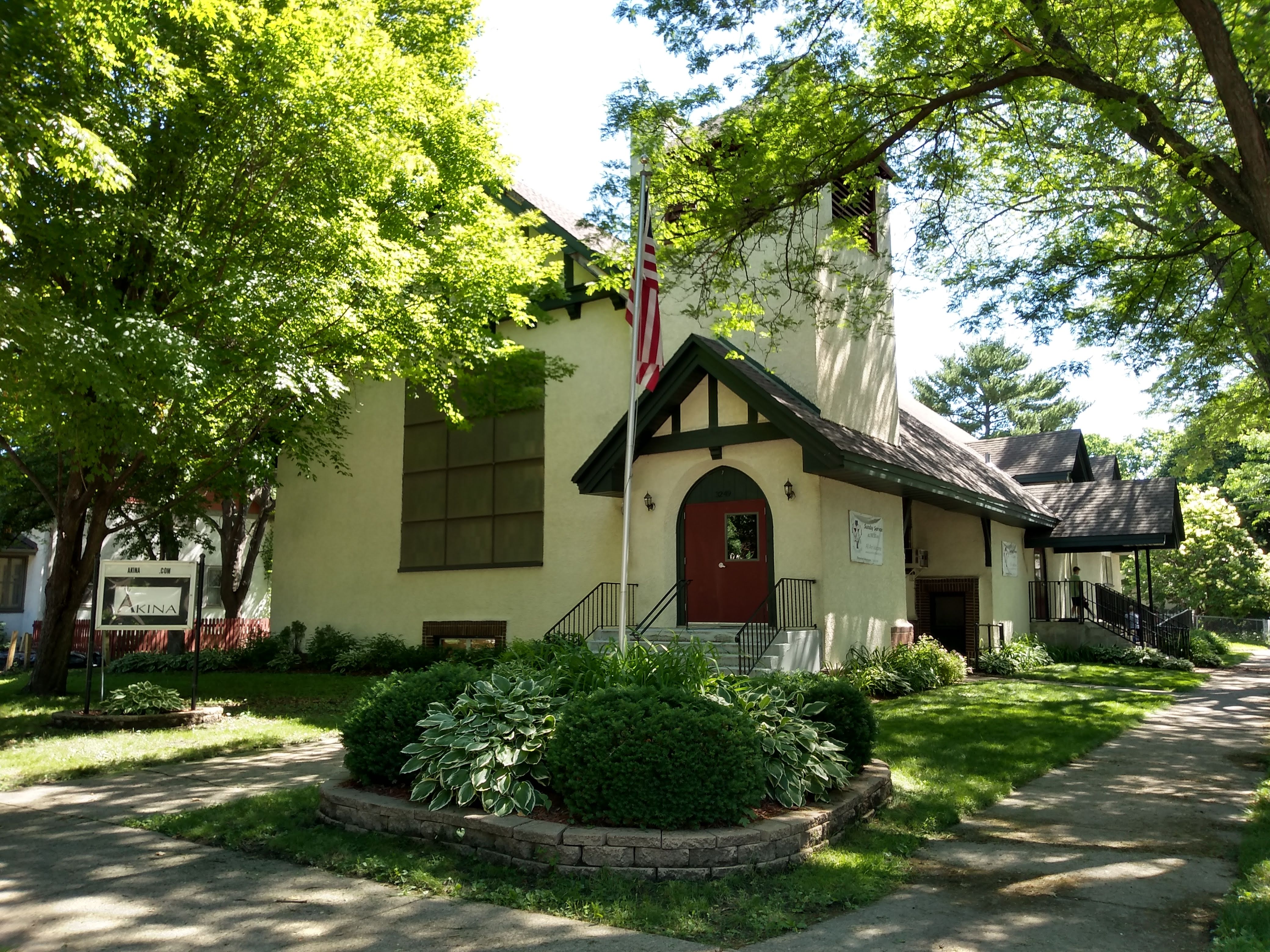 After walking a portion of 34th Street—the southern border of the neighborhood—we turned back north on 30th Avenue. On the northeast corner with 33rd Street, the Akina Community Church occupies a structure that was built in 1914 as Vanderburgh Presbyterian Church.