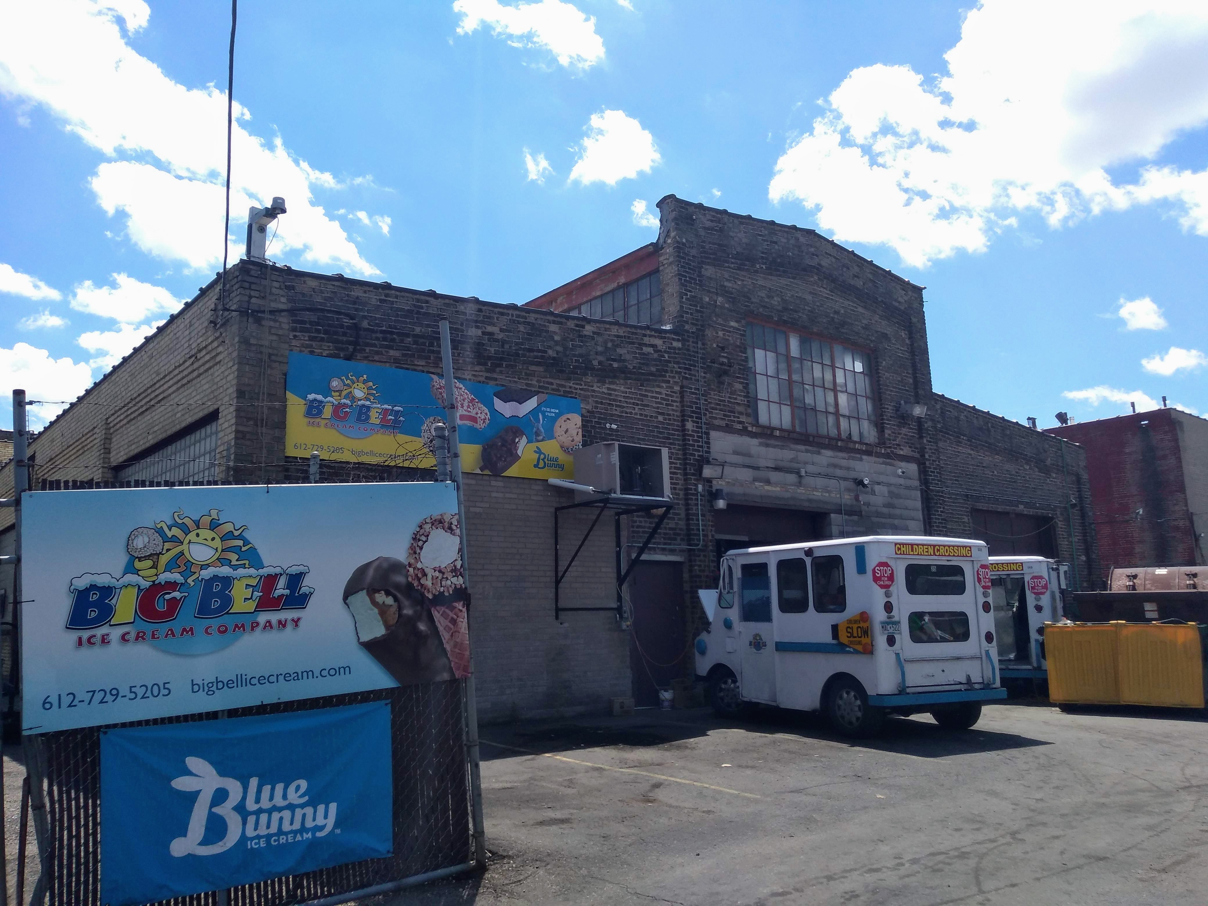 Crossing 32nd Street, we passed Overproof Screen Printing again and then immediately afterward, another building in the same 1917 factory complex, this one serving as home base for the Big Bell Ice Cream trucks that provide mobile retailing of frozen treats.