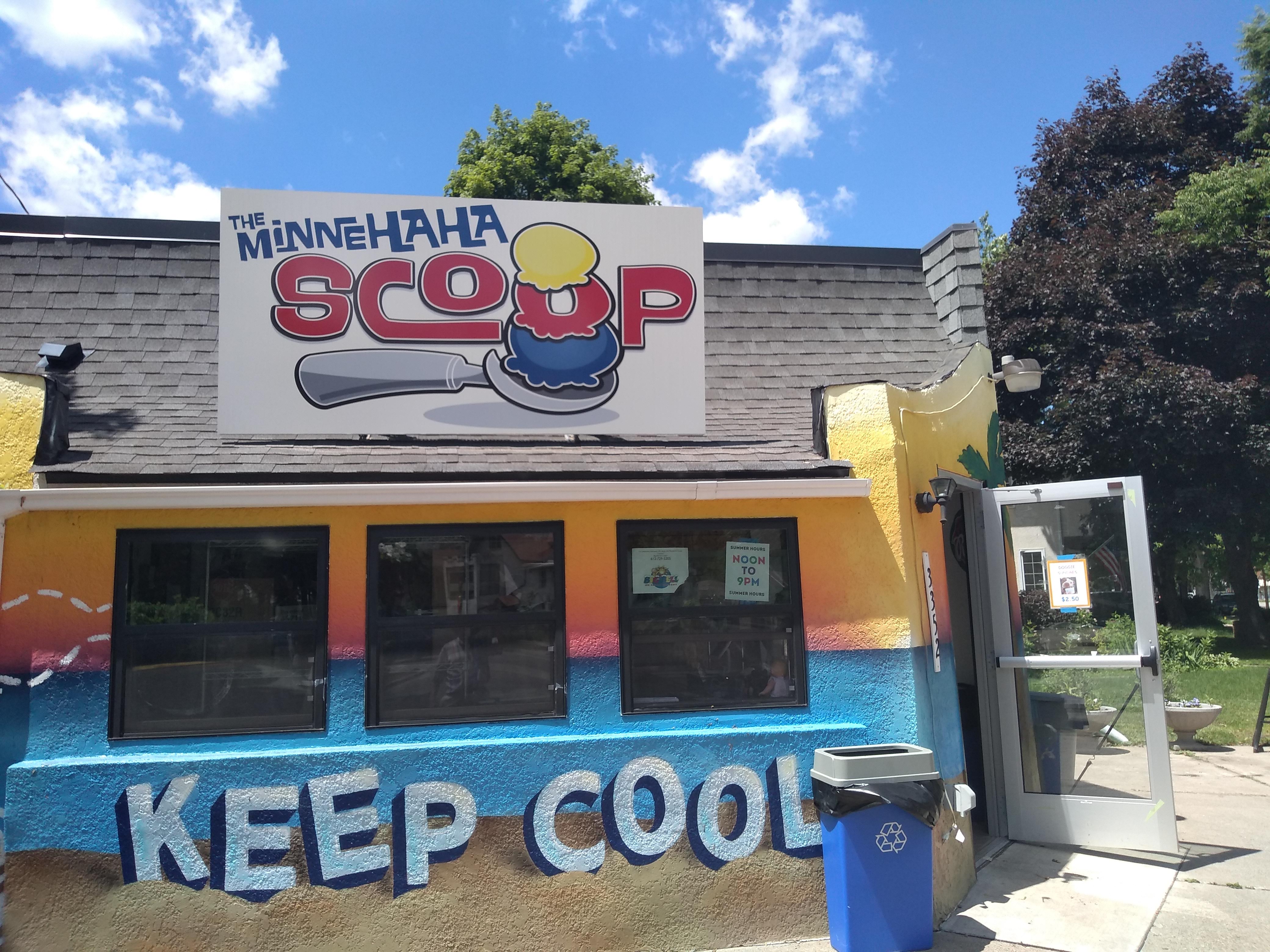 As it turns out, in this neighborhood one doesn’t need to wait for the sound of an ice cream truck. Taking 34th Street over to Minnehaha Avenue in order to head back north, we found ourselves wrapping around the colorful Minnehaha Scoop, which stands on the northwest corner of 34th Street and Minnehaha.