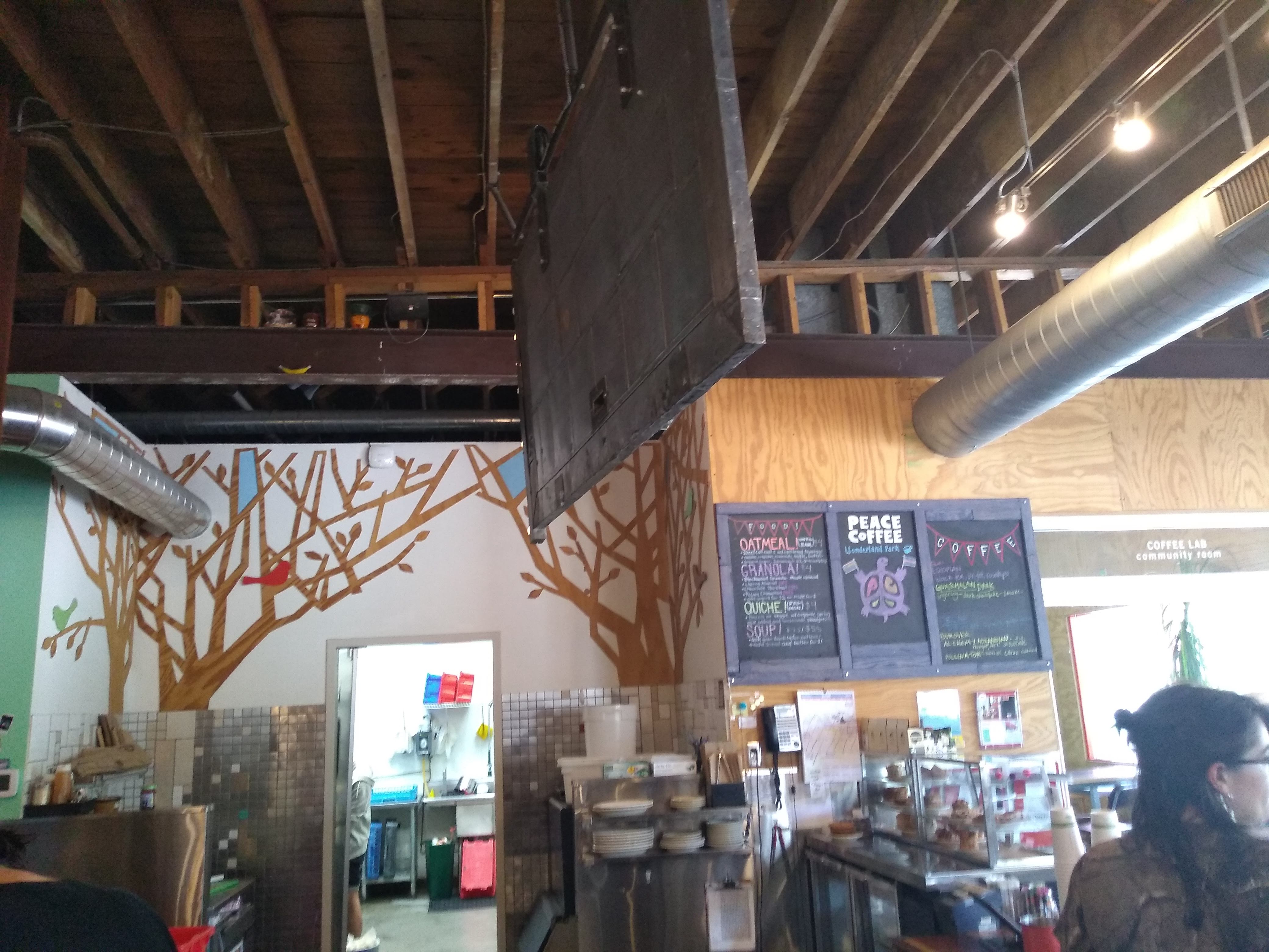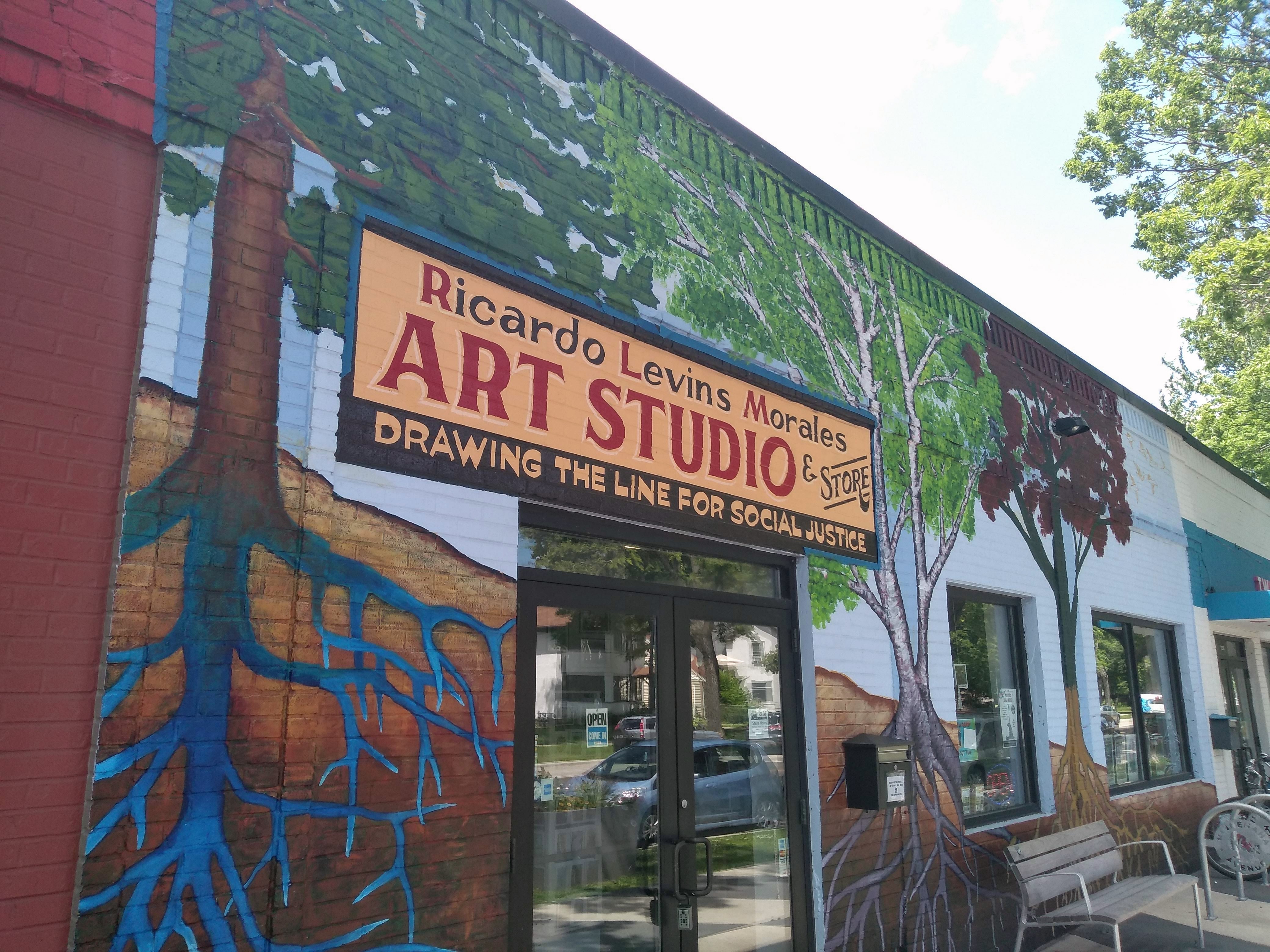 Upon returning to Peace Coffee, we went in to get some cooling drinks and admire the interior decorations. Afterward, we paid a quick visit to Ricardo Levins Morales’s art studio and store next door. Although I didn’t buy anything on this visit, I was reminded of why I’ve bought from him in the past: he really has quite a talent for bringing powerful statements into visual form.