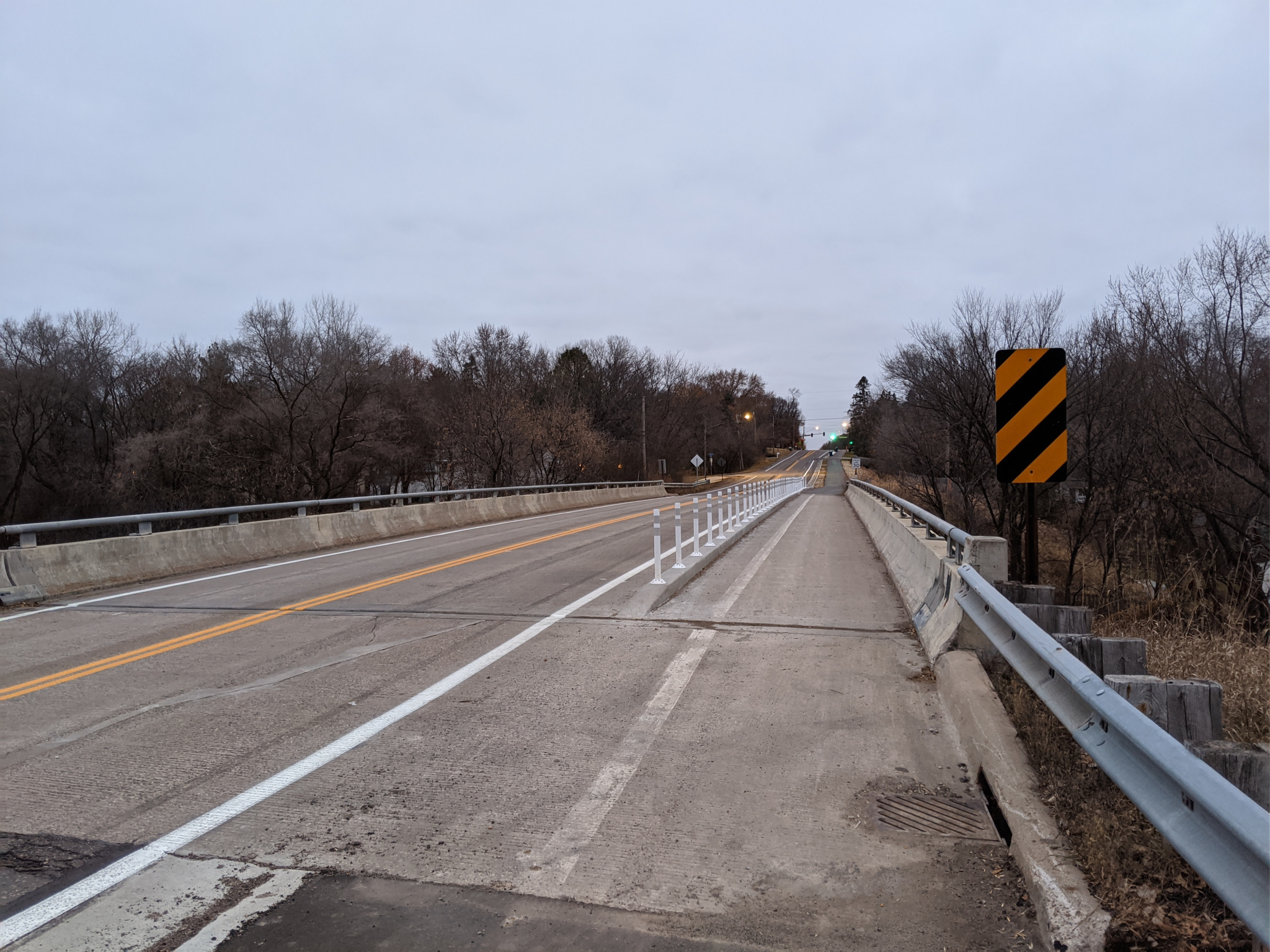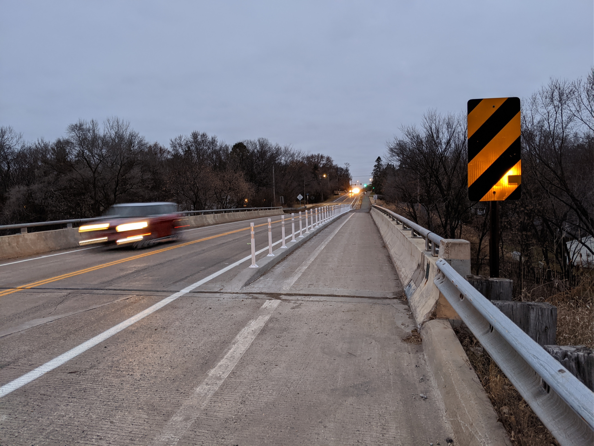 Here at the bridge crossing, they have not only added flex posts, but a small concrete barrier for added protection between motor traffic and the trail.