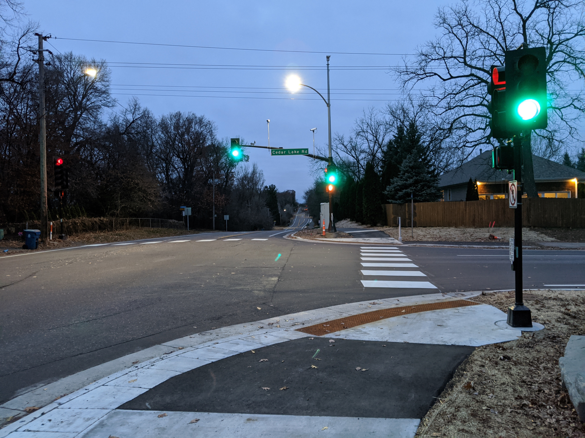 The first stop light crossing is at Cedar Lake Rd. I did encounter cars here encroaching over the pedestrian/bike crossing as well as making fast paced Right on Reds. Some safety/traffic calming improvements could be made here. Most of this path is not flat with lots of up and down hill grades. They did an excellent job at keeping the path “table top” across resident driveways rather than making it dip for the convenience of cars. This is good design that needs to be copied elsewhere.