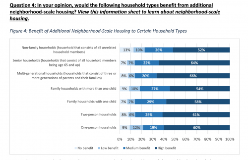 Residents overwhelmingly think that additional neighborhood-scale housing (e.g., duplexes, townhomes, cottage houses) benefits everybody.