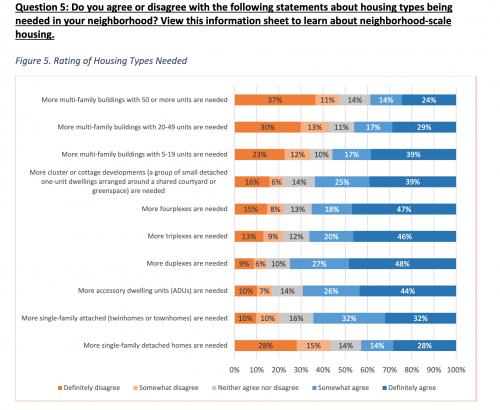 And more than 50 percent of respondents want to see neighborhood-scale housing everywhere in the city — not just on arterial streets or next to transit stops.