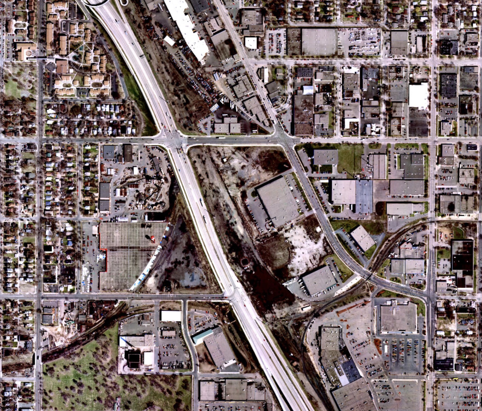 Between Third and Fifth avenues, a small rail yard required the corridor be at least eight tracks wide. Today, this space is occupied by a sports field, two gardens, a parking lot and the Fourth Avenue bridge abutment. The removed Clinton Avenue bridge had six spans and the Fourth Avenue bridge had 10 spans to cross the former yard.