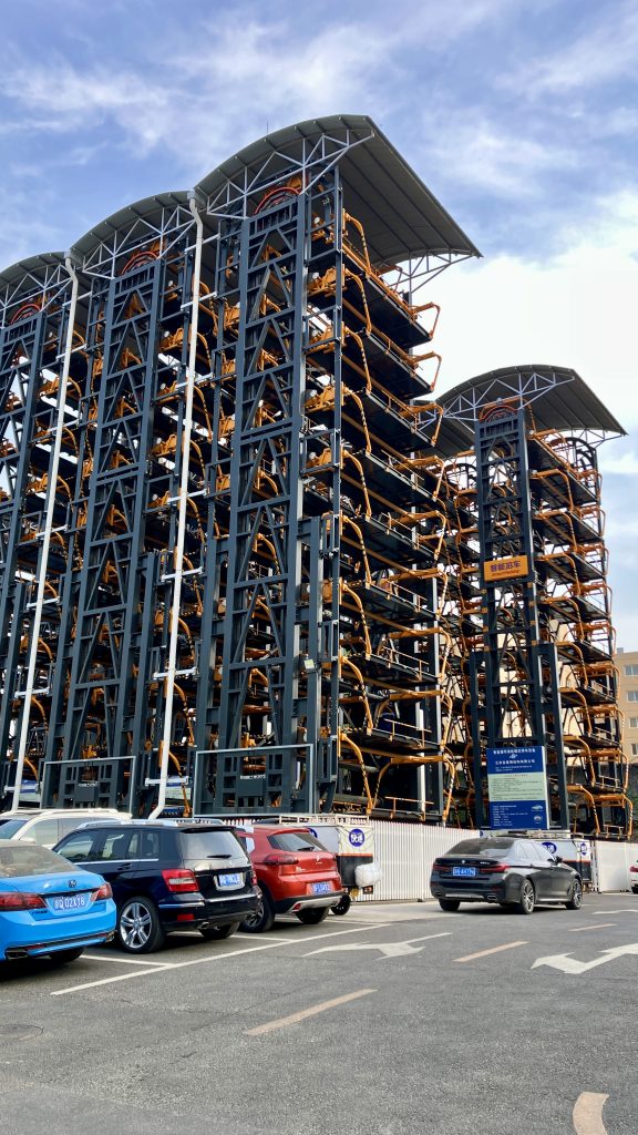 Another German contribution — a towering vertical elevator car park. It was empty when we saw it. Presumably it fills on weekends when the area transforms into a thriving party and nightlife scene.