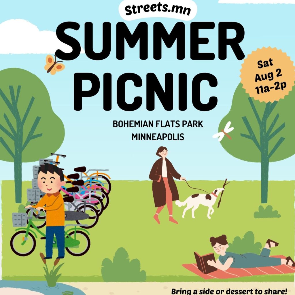 Livable Lyndale Lemonade Stand (Saturday, July 26, 1:30 – 3:30 p.m.): The movement for a more Livable Lyndale continues through community advocacy and volunteering with Move Minnesota. With Hennepin County expected to finalize the design for the 2027 Lyndale Avenue reconstruction later this year, now is the time to show your support. Join Move Minnesota at a pop-up lemonade stand at the Soo Line Community Garden on July 26! Enjoy cookies and lemonade while helping collect postcards that will be sent to Lyndale decision makers advocating for a safer, more livable Lyndale.