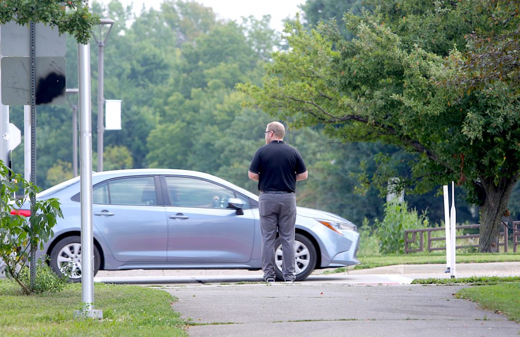 Before the demonstration project, Kutzky trail users had to cross two lanes of northbound traffic. That lead to dangerous crossing scenarios in which one car could stop but another decides to aggressively pass the stopped car in the other lane.