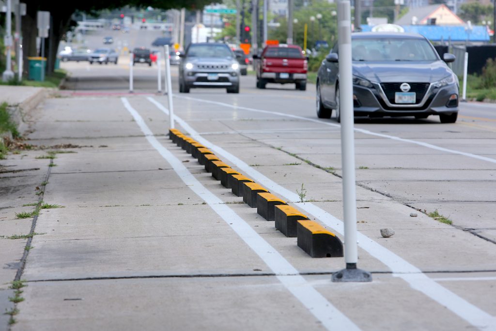 A four-block long bike infrastructure demonstration near downtown Rochester installed this summer does more than create four blocks of protected bike lanes. It also makes an already existing and heavily used bike route safer.