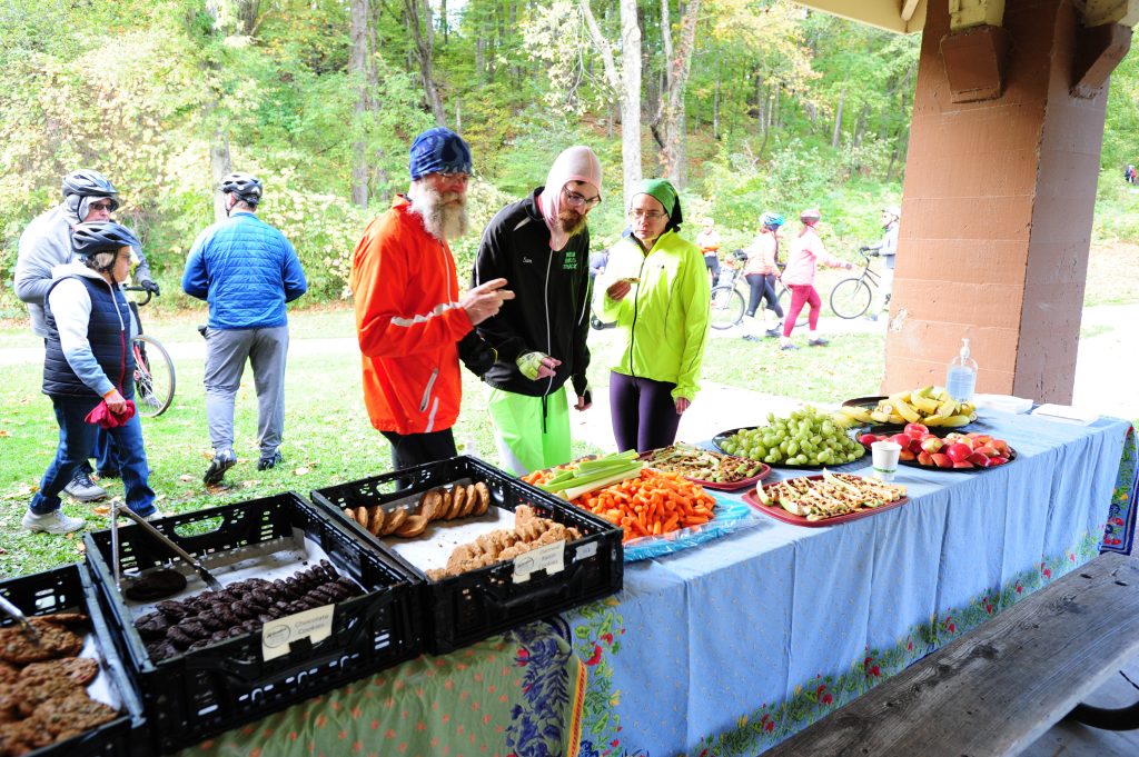 The former Rapidan Dam rest stop — featuring a bluegrass band and the popular pie — is unavailable due to the catastrophic June 2024 flood. “We can’t use the same route. The bridge is out,” GMBWA’s Corley explains. “So, we’re bringing the pie to Mount Kato instead of riders going to the pie.