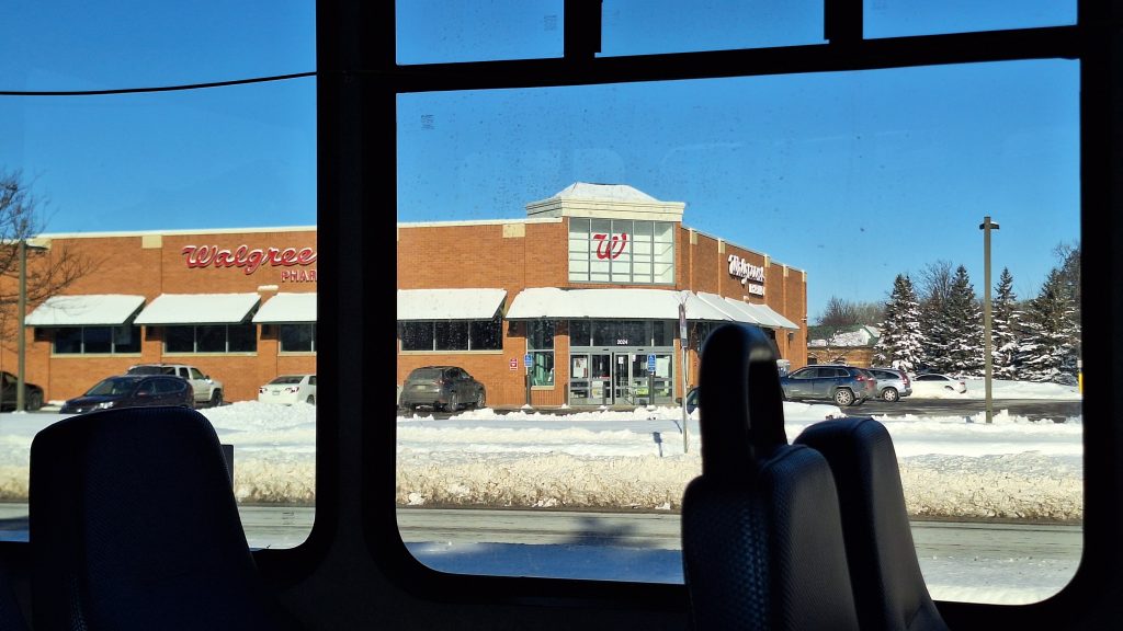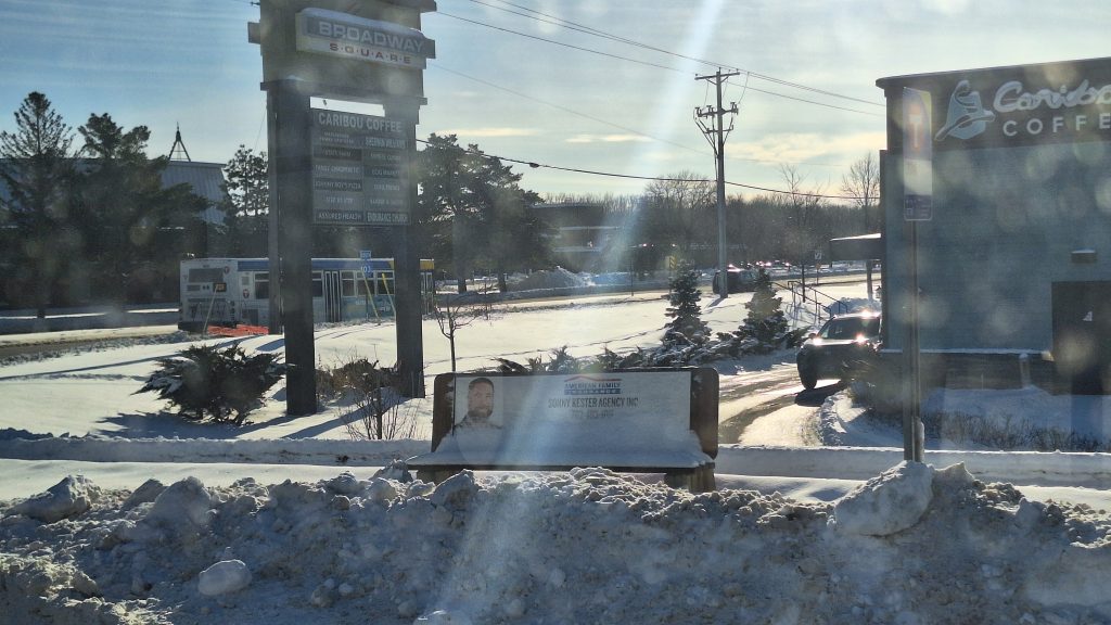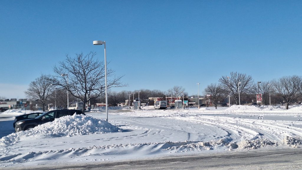 On my way out of the transit center, I was greeted by a vast parking lot and was without any physical form of pedestrian infrastructure leading people to Northtown Mall or its surrounding businesses. I had to trudge through ice and snow while looking out for oncoming cars as I cut through parking lots, something that I can do but would not prefer to do coming from a transit center.
