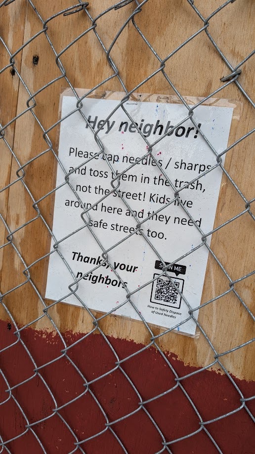 From April 2022 onward, 499 Snelling deteriorated fast. Intruders stripped the HVAC system. The roof sustained damage. Loiterers moved into the parking lot in numbers that neighbors described as sometimes reaching 40 people at a time, with open drug sales and regular police calls. That sign up on the plywood about safe sharp disposal? I made that with a friend’s laminator and Microsoft Word so even if people were using, they’d at least know how to clean up. The city’s Department of Safety and Inspections declared it an official nuisance site in the summer of 2025, triggering a formal process that could lead to demolition.